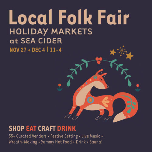Join us for a magical experience at MakeShare’s LOCAL FOLK FAIR: Holiday Market, set on the beautiful orchard grounds at Sea Cider, Sunday NOV 27th and DEC 4th from 11am-4pm!