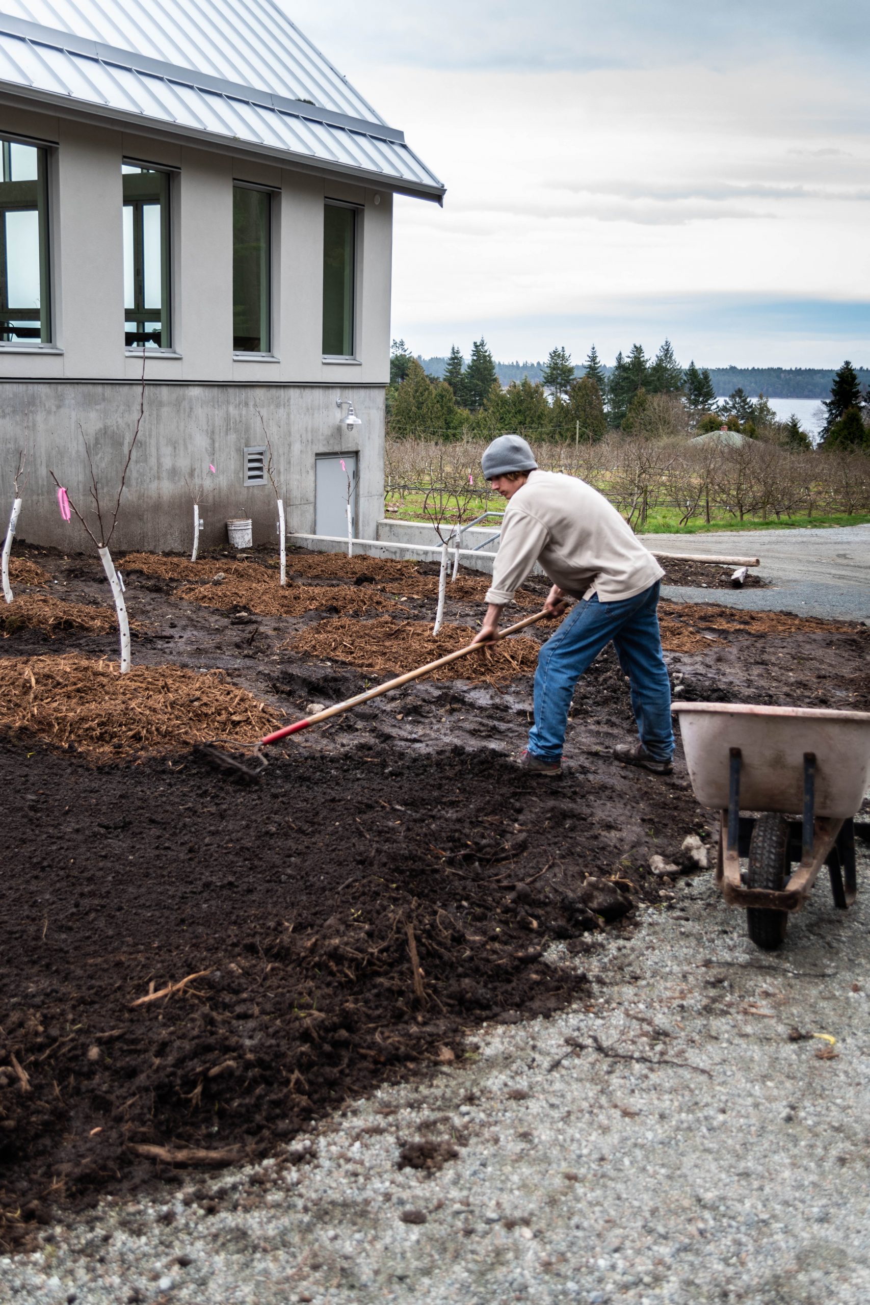Thomas is hard at work today in our new organic Hyslop mini-orchard. Hyslop is a type of crabapple and for those of you who are familiar with Pomona, you understand the importance of this varietal. The Hyslop crab originated well before 1850 around the Boston area and for well over 100 years, it was very well known and commonly grown. Although crabapple aficionados all know the apple, in recent times it has been mostly forgotten and therefore more challenging to find. We are excited to add these 14 Hyslop trees to our organic orchard and hope to have an estate-grown Pomona one day! Coming back later this spring – Pomona is a dessert-style cider, handcrafted by freezing and slowly fermenting Hyslop crabs. Learn more about Pomona.